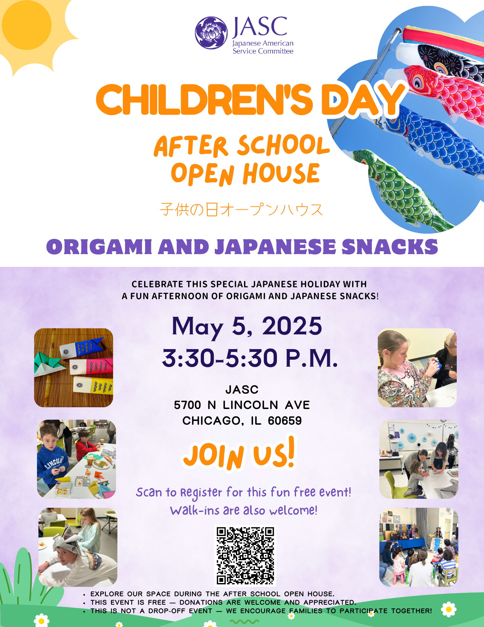Celebrate Children’s Day on May 5 (3:30–5:30 PM) at the JASC After School Open House.