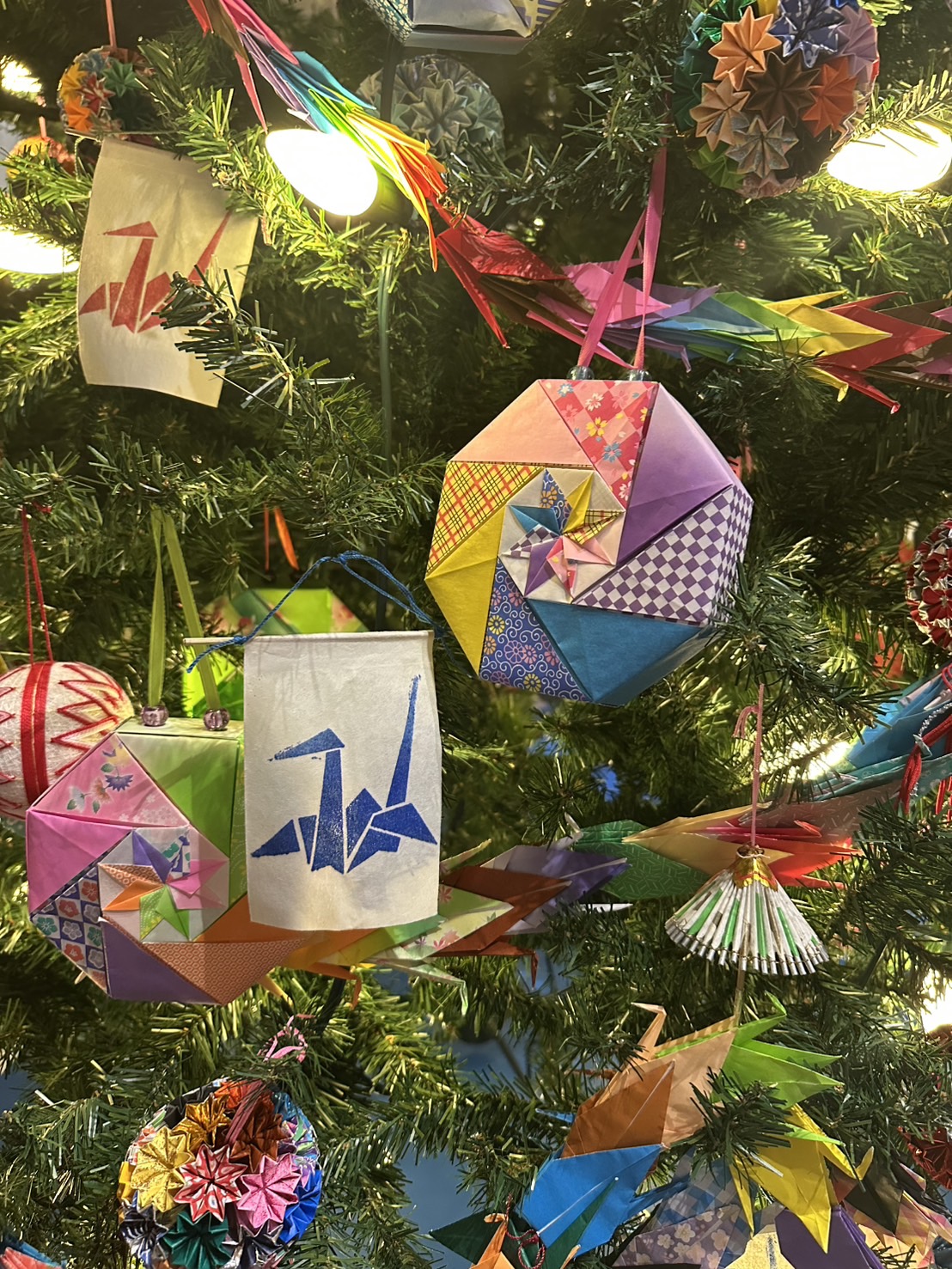 Each year, our Tampopo Kai teacher Naomi Negi and participating families including our Children’s Program Coordinator Yuri Yatsuda, gather to adorn the Japan Tree with handcrafted ornaments that reflect traditional Japanese artistry. These include temari (embroidered thread balls), washi-ningyō (paper dolls in kimono), orizuru (paper cranes), kabuto (samurai helmets), and kusudama (origami balls). Together, these ornaments symbolize both the beauty and creativity of Japanese culture.
